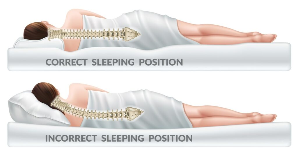 • If you’re sleeping on your stomach, do not use any pillow as it will put too much pressure on your neck. Sleeping with a flat head of the bed or using an incline wedge can help alleviate this posture.